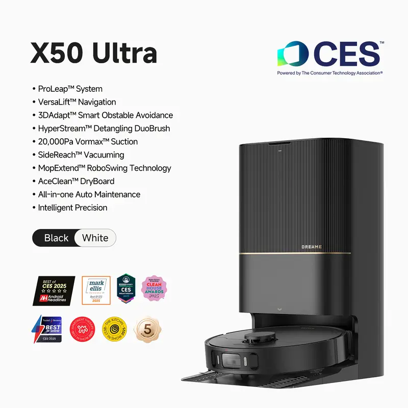 DREAME X50 Ultra Robot Vacuum And Mop With Auto-Empty And Mop Self-Cleaning, 20, 000Pa Suction, Obstacle Avoidance And 360° Navigation, Corner To Edge Deep Cleaning, Detangling Brush – Certified Refurbished (99% New)