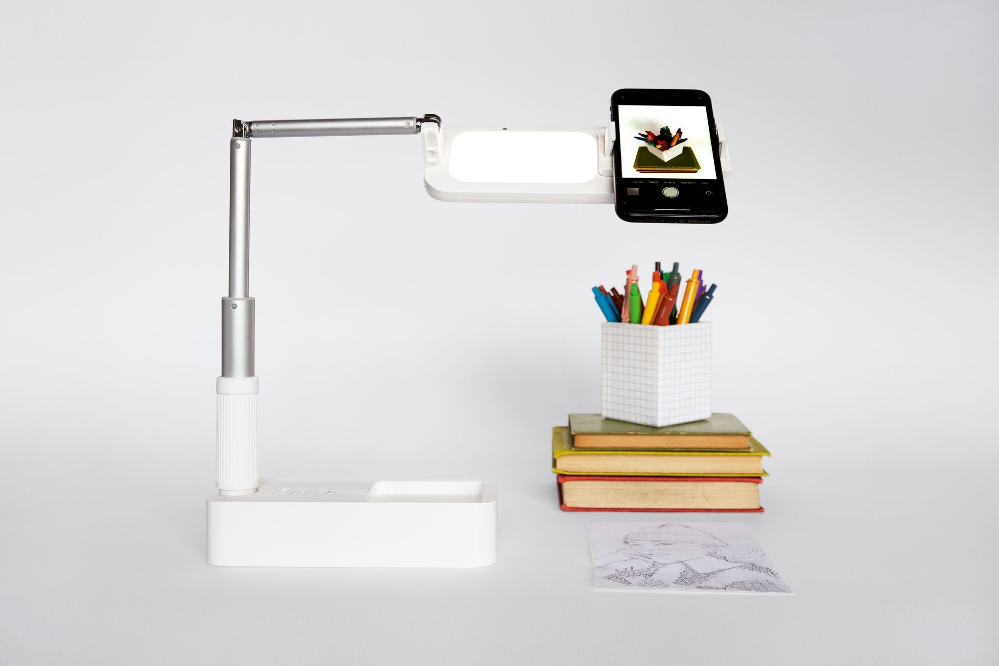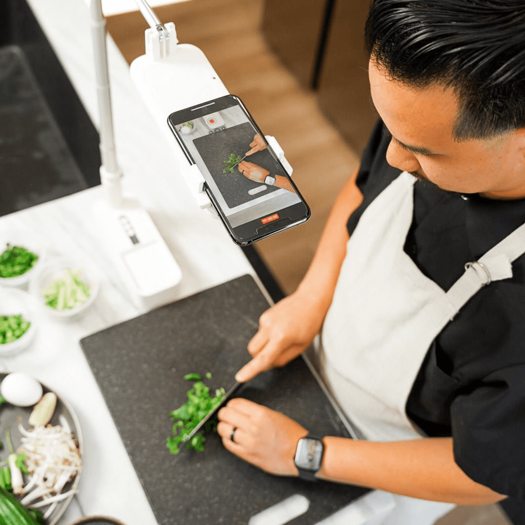 The UNIQU Lighting Kit can support phones with cases up to 3.15 inches. New phone releases are supported e.g. iPhone 12 and 13 Pro Max and Samsung S20 and S21 Ultra. The phone clamps have silicon grips so your phone will not slide or fall out.